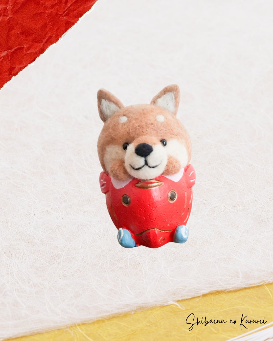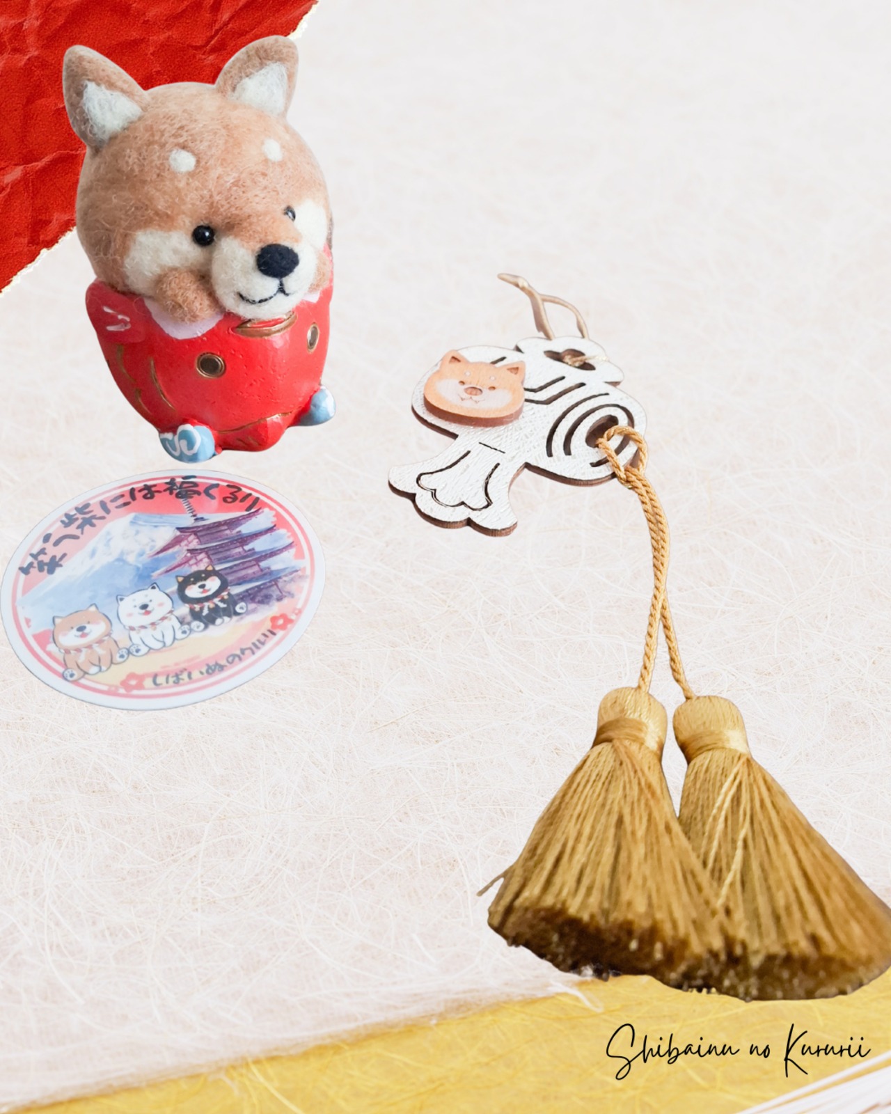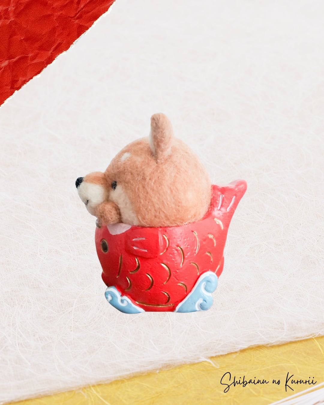 羊毛フェルト柴犬のめで鯛くんと一緒飾り