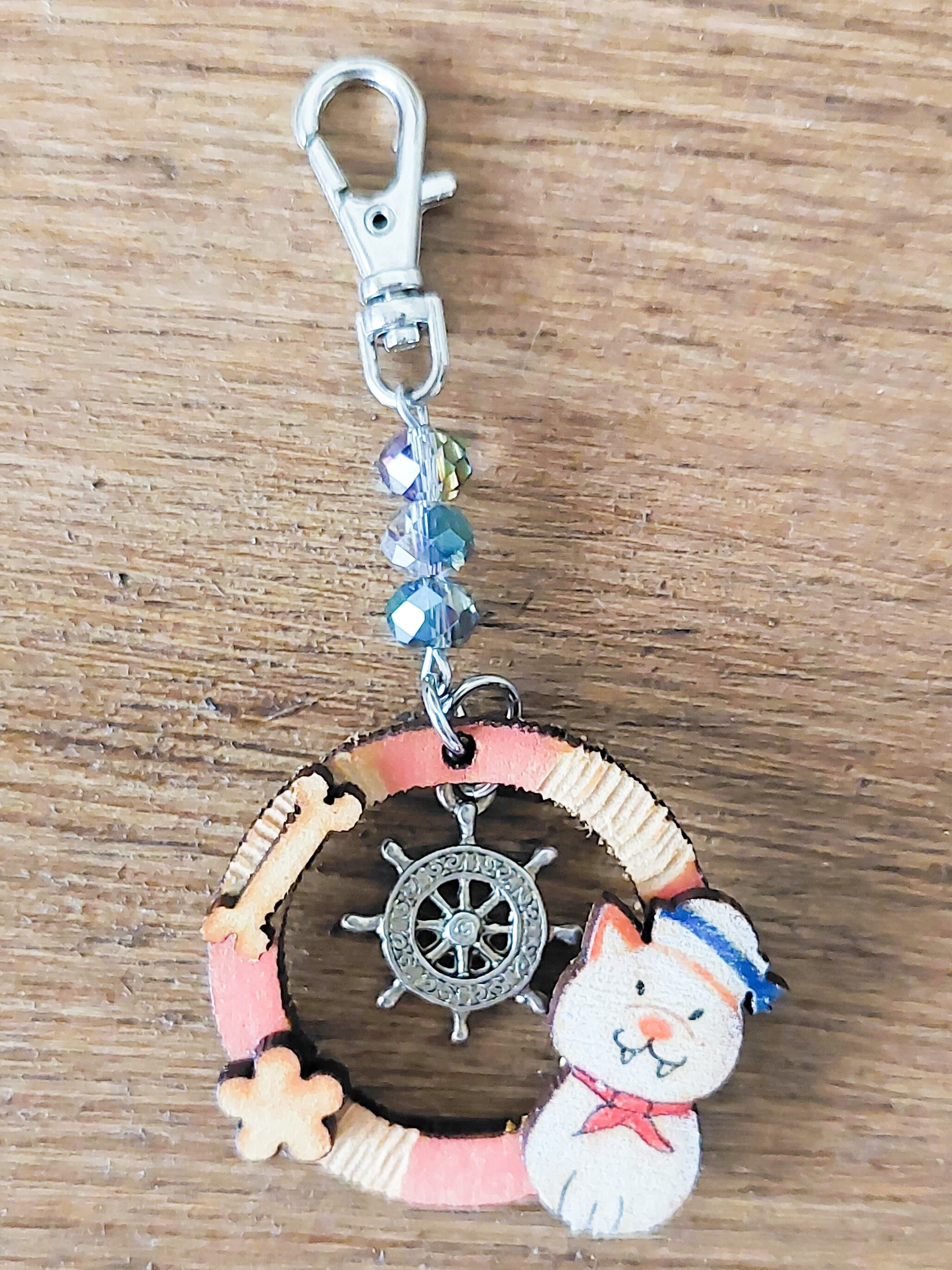 木をカットしたパーツに色鉛筆で色を重ねて描きました