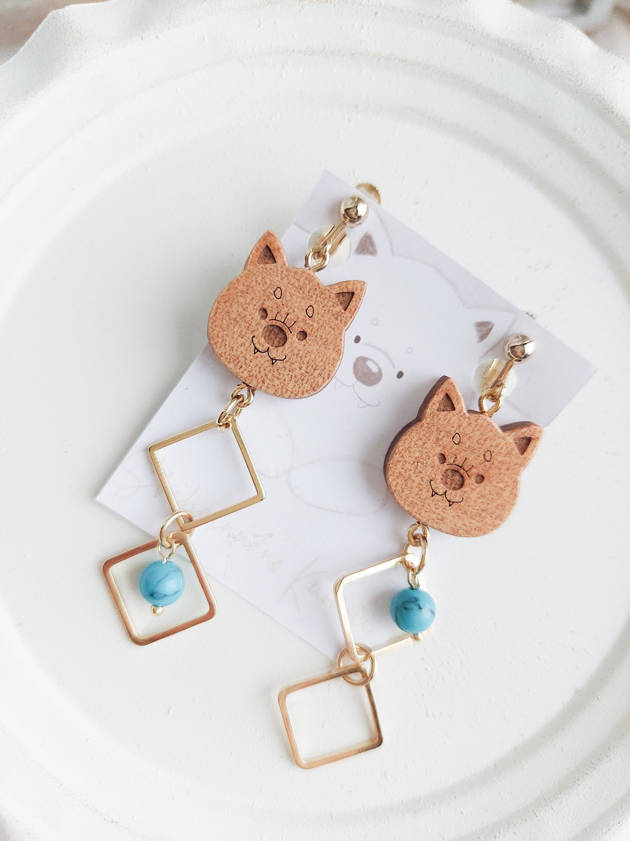 木の温もりと柴犬の可愛らしさがあわさったイヤリングは